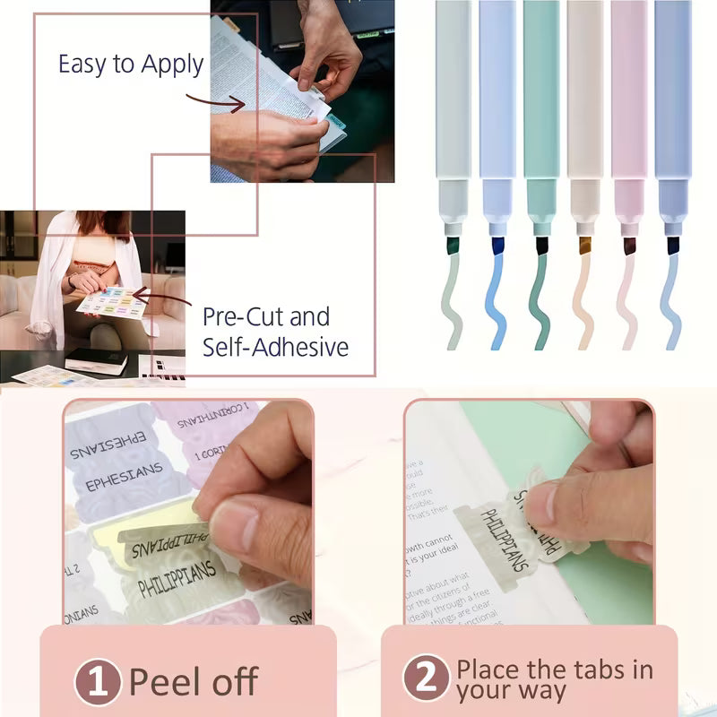 Bible Tabs Set with 6 No-Bleed Highlighters & 75 Sticky Tabs
